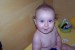 Jsem už velká holčička, dnes - 16.9.2007 - je mi 6 měsíců a 3 dny :-) , hezky papám maminčino mlíčko a zeleninku k tomu, když mě posadí tak sedím :-), válím sudy, klekám si na kolínka a opírám se o ručičky a houpu se ( za chvíli asi polezu ), jsem veselá a hodná holčička. Jo a mám jeden zub( jedničku vlevo dole) a další se mi dere dásničkou ven. Sakra to bolí, tak někdy večer pláču a na bolístku si stěžuju.